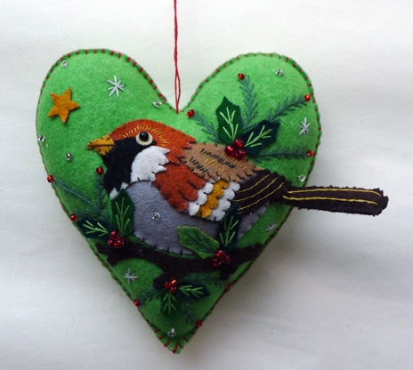 6″ Christmas Heart Bird Ornament