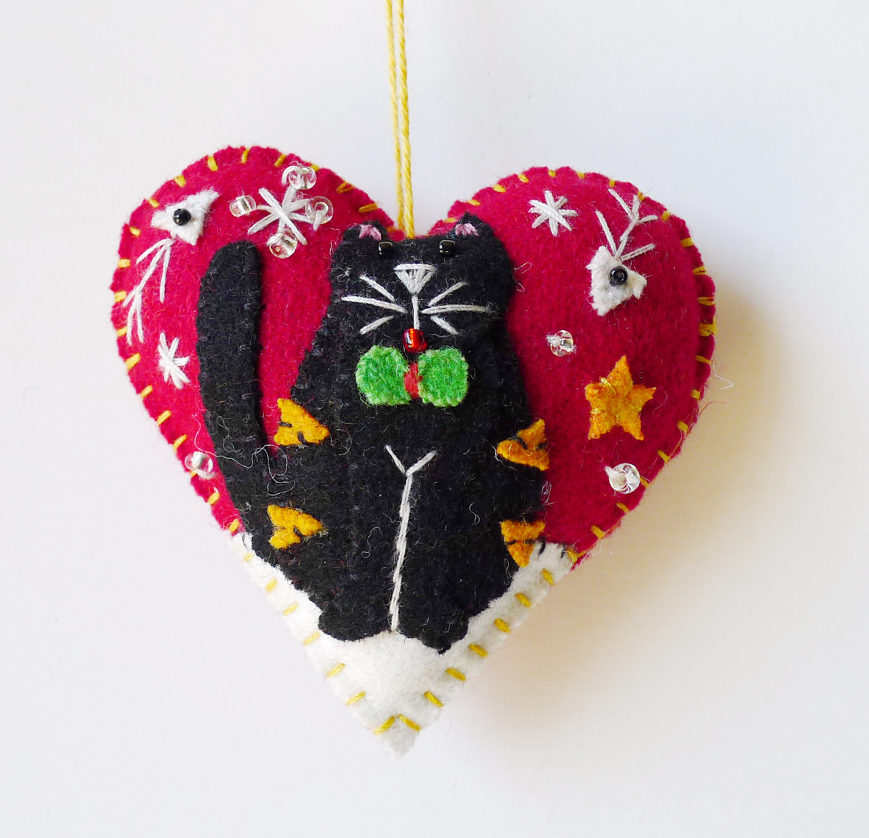 3″ Cat on Heart Shape Ornament